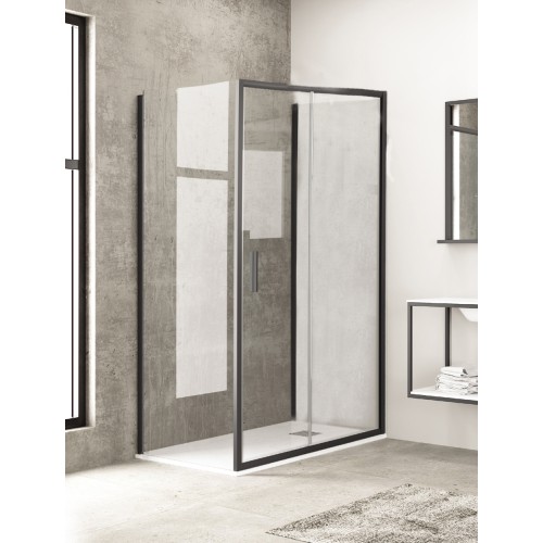 Καμπίνα μπάνιου δίφυλλη συρόμενη με σταθερό πλαϊνό κρύσταλλο μοντέλο Efe 600 & NP10 Nero ..