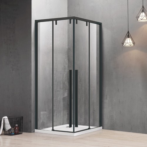 Καμπίνα Μπάνιου Mε Είσοδο Από Γωνία Με Συρόμενες Πόρτες Santorini100| Kρύσταλλο Διάφανο 8mm - Black