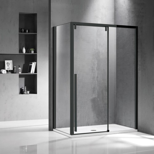 Γωνιακή Καμπίνα Μπάνιου Ανοιγόμενη Με Πλαϊνό Σταθερό Κρύσταλλο Nero Pivot & Free 1 Nero | Κρύσταλλο Με Γραμμές 6mm - Black
