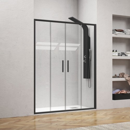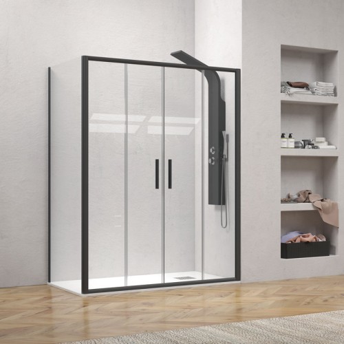 Καμπίνα μπάνιου με δύο σταθερά πάνελ και δύο συρόμενες πόρτες μοντέλο Efe 100 Nero Με διάφ..