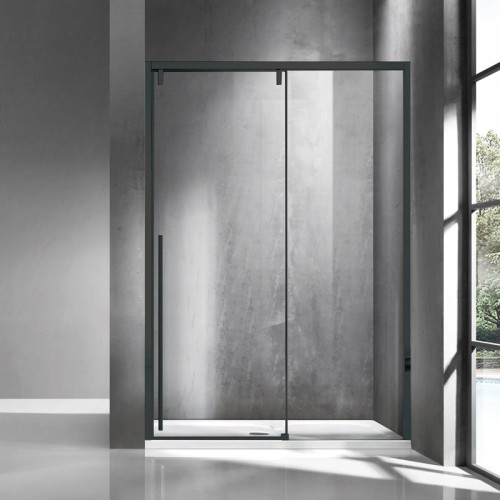 Καμπίνα Μπάνιου Μοντέλο Santorini 500 & NR10 Με Πόρτα Συρόμενη Με Πλαινό Σταθερό Κρύσταλλο | Κρύσταλλο Διάφανο 8mm - Black
