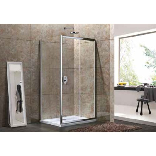 Καμπίνα Μπάνιου Δίφυλλη Συρόμενη Μοντέλο Oia 70 Με Πλαινό Σταθερό Κρύσταλλο | Κρύσταλλο Διάφανο 5mm - Chrome